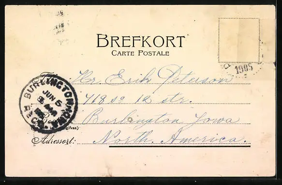 gelaufen 1905, Briefmarke entfernt, geklebter Einriss li. mittig, guter Zustand
