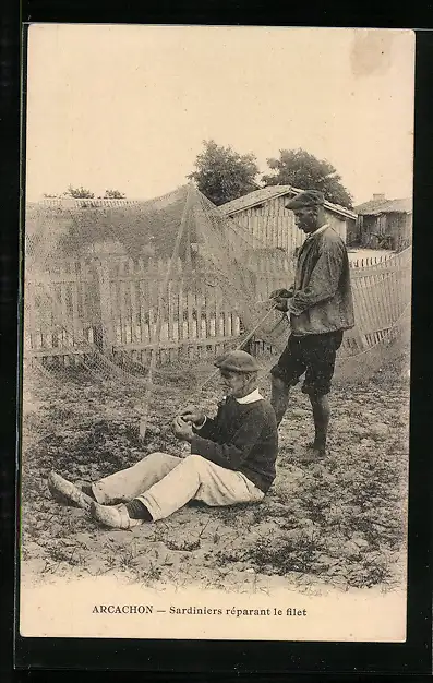 AK Arcachon, Zwei Fischer spannen ein Netz