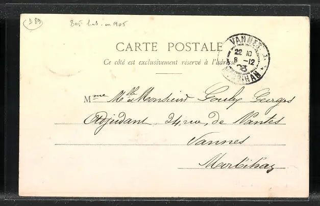 Personenbezogene Daten auf der Rückseite der Karte wurden durch blauen Textmarker unkenntlich gemacht. Die blauen Stellen sind auf die Vorderseite durchgeweicht und wirken sich negativ auf das Postkartenfoto aus
