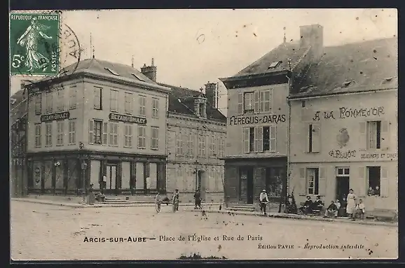 AK Arcis-sur-Aube, Place de l`Église et Rue de Paris