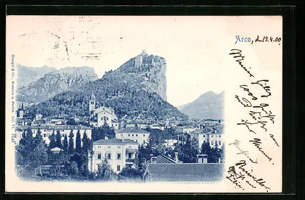 AK Arco, Ortspartie mit Kirche und Burg