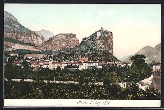 AK Arco, Teilansicht mit Bergen