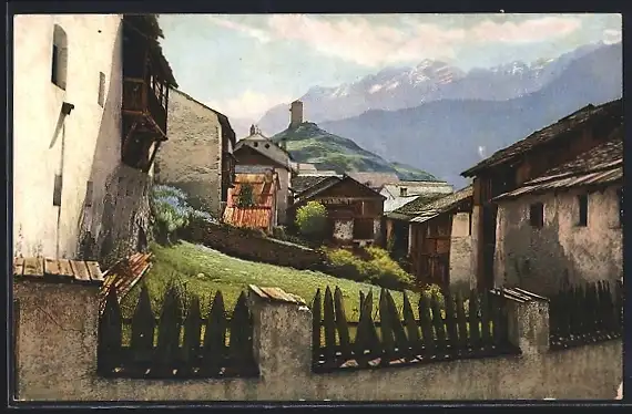 AK Ardez, Teilansicht auf das Dorf mit Blick auf den Steinsberg