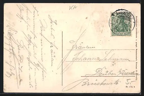 gelaufen 1914, Eckknick oben li., guter Zustand