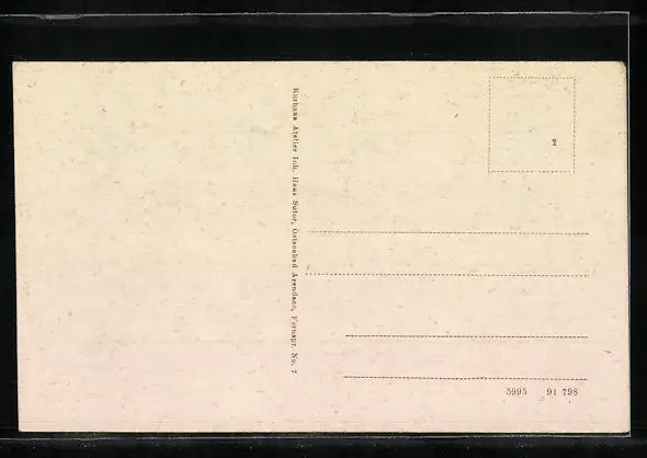 Personenbezogene Daten auf der Rückseite der Karte wurden durch blauen Textmarker unkenntlich gemacht. Die blauen Stellen sind auf die Vorderseite durchgeweicht und wirken sich negativ auf das Postkartenfoto aus