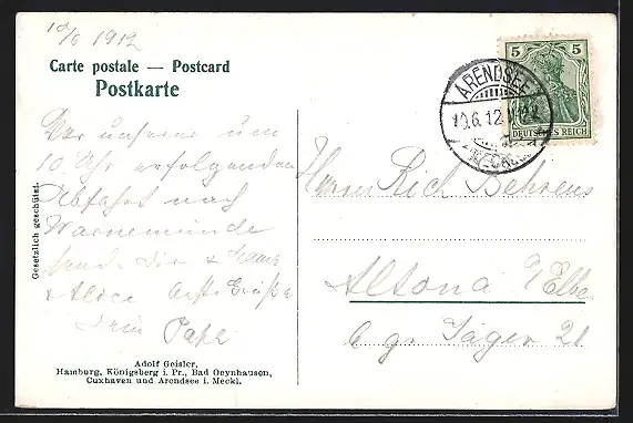 alte Ansichtskarte, gelaufen 1912, Stempelspur, guter Zustand