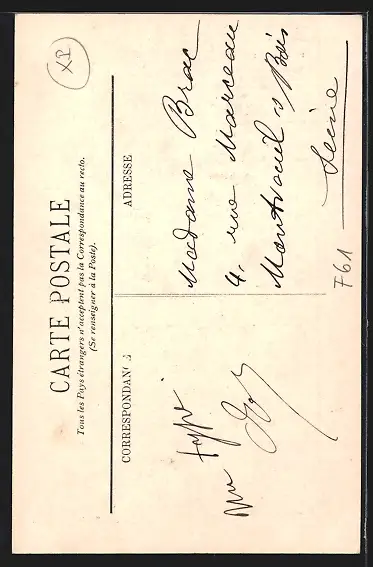 Personenbezogene Daten auf der Rückseite der Karte wurden durch blauen Textmarker unkenntlich gemacht. Die blauen Stellen sind auf die Vorderseite durchgeweicht und wirken sich negativ auf das Postkartenfoto aus