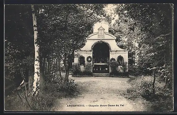 AK Argenteuil, Chapelle Notre-Dame du Val entourée d`arbres majestueux