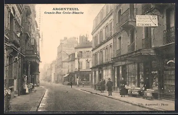AK Argenteuil, Grande-Rue Croisa-Blanche avec passants et boutiques