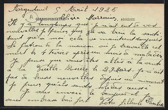 Personenbezogene Daten auf der Rückseite der Karte wurden durch blauen Textmarker unkenntlich gemacht. Die blauen Stellen sind auf die Vorderseite durchgeweicht und wirken sich negativ auf das Postkartenfoto aus