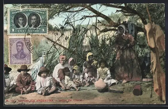 AK Argentinien, Indios del Chaco, Indio-Familie unter einem Baum