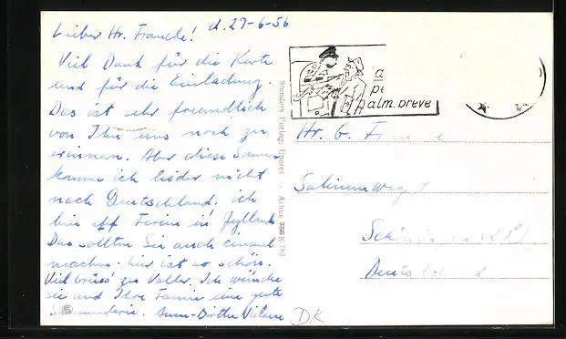 alte Ansichtskarte, gelaufen 1956, Briefmarke entfernt, guter Zustand