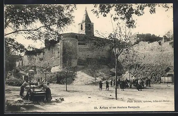 AK Arles, Anciens Remparts et scène de vie quotidienne devant les remparts