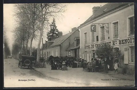 AK Arnage, Scène de rue avec l`Hôtel du Croissant et du Benoit