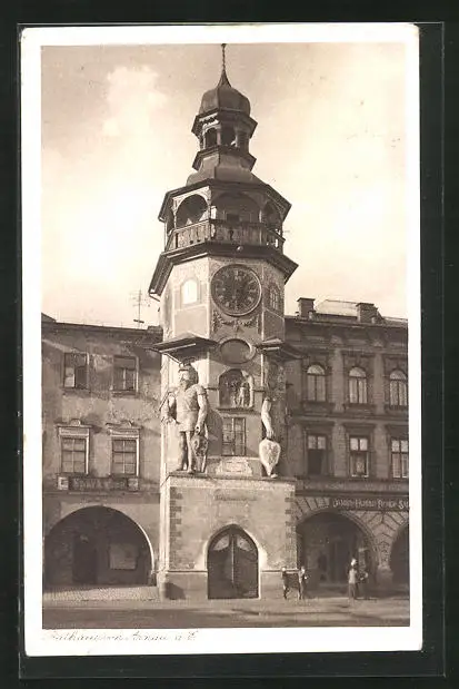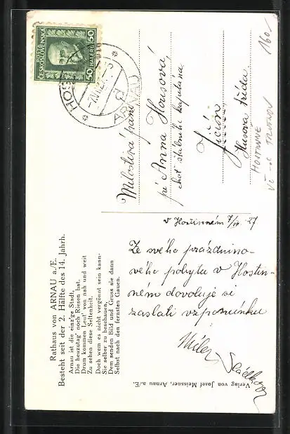 AK Arnau / Hostinne, Ansicht vom Rathaus