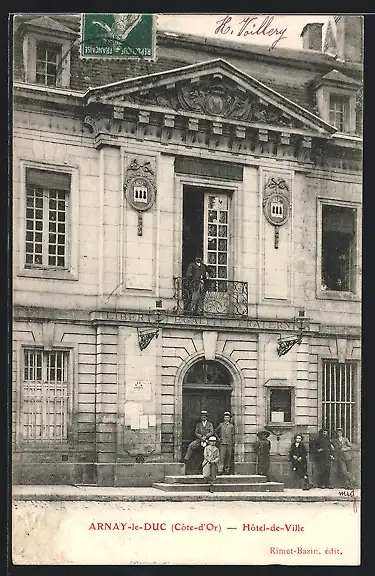 AK Arnay-le-Duc, Hôtel-de-Ville avec des personnes devant l`entrée