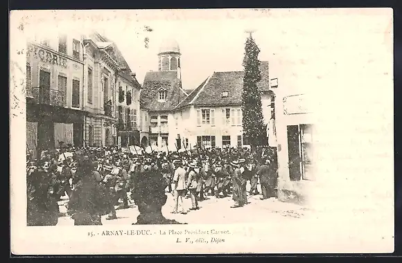 AK Arnay-le-Duc, La Place Président Carnot avec une foule rassemblée