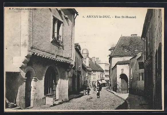 AK Arnay-le-Duc, Rue St-Honoré avec bâtiments historiques et passants