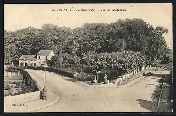 AK Arnay-le-Duc, Vue sur l`Arquebuse avec maisons et arbres