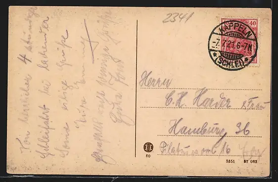 alte Ansichtskarte, gelaufen 1921, Eckknick re. oben, guter Zustand