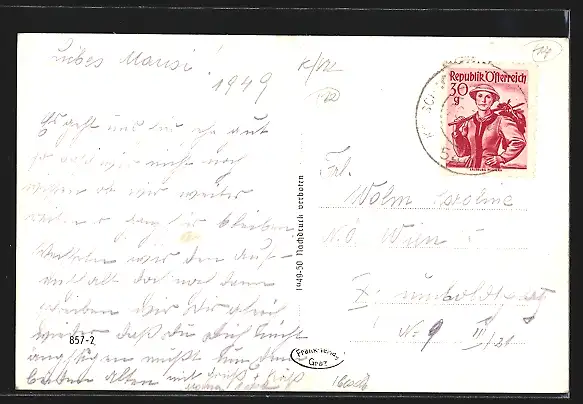alte Ansichtskarte, gelaufen 1949, guter Zustand