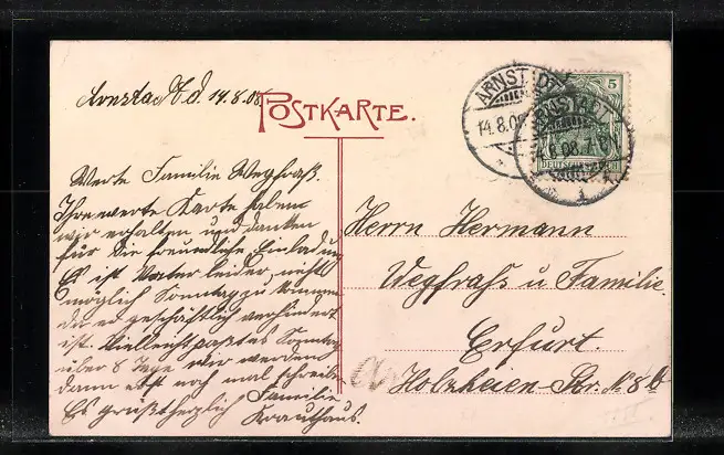 alte Ansichtskarte, gelaufen 1908, Eckknick re. oben, guter Zustand