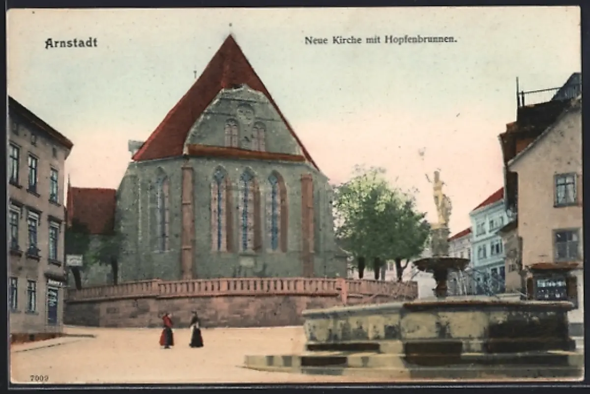 AK Arnstadt, Neue Kirche mit Hopfenbrunnen