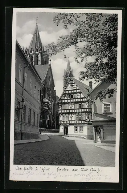 AK Arnstadt, Strassenpartie an der Kirche