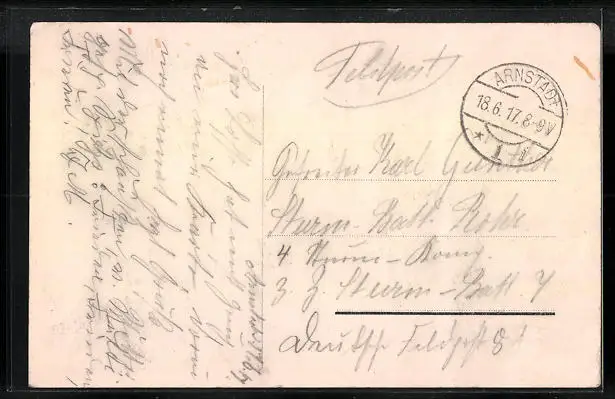 alte Ansichtskarte, gelaufen als Feldpost 1917, Bugspur vertikal li. oben, guter Zustand