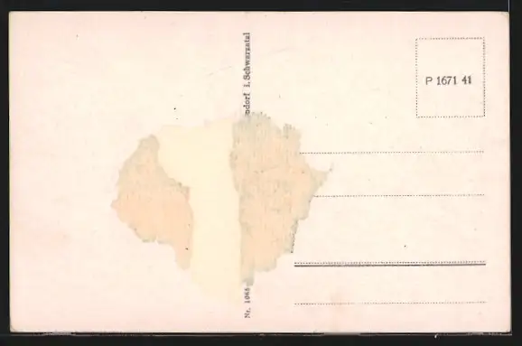 Personenbezogene Daten auf der Rückseite der Karte wurden durch blauen Textmarker unkenntlich gemacht. Die blauen Stellen sind auf die Vorderseite durchgeweicht und wirken sich negativ auf das Postkartenfoto aus
