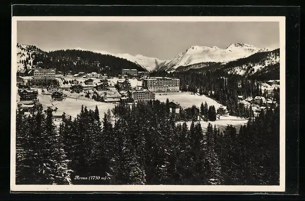 AK Arosa, Ortsansicht im Winter aus der Vogelschau
