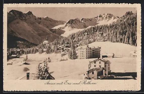AK Arosa, Ortsansicht mit Erz und Rothorn