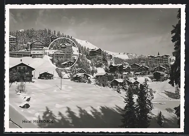 AK Arosa, Ortsansicht mit dem Hotel Metropol im Winter