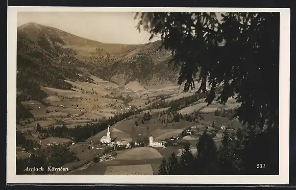 AK Arriach /Kärnten, Panorama mit Kirche