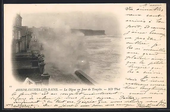 AK Arromanches-les-Bains, La Digue un Jour de Tempête
