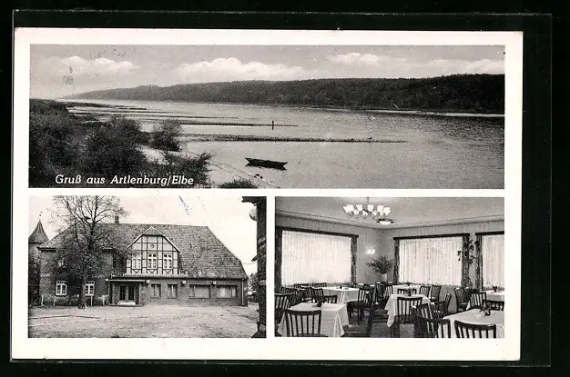 AK Artlenburg /Elbe, Nienau`s Gaststätte, Uferpartie