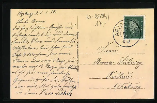 alte Ansichtskarte, gelaufen 1930, guter Zustand