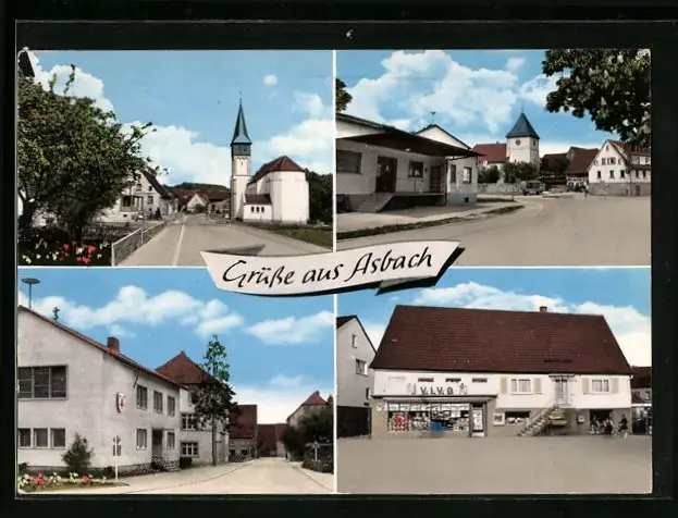 AK Asbach /Baden, Strassenpartie mit Kirche