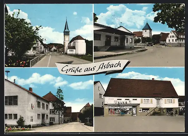 AK Asbach /Baden, Strassenpartie mit Kirche