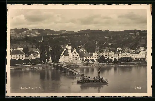 AK Aschach a. d. D., Ortsansicht mit Uferpartie