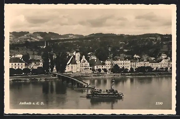 AK Aschach a. d. D., Ortsansicht mit Uferpartie