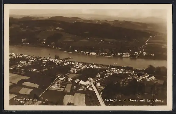 AK Aschach a. d. Donau, Gesamtansicht mit Landshaag