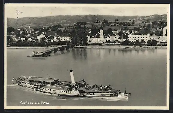 AK Aschach a. d. Donau, Uferpartie mit Dampfer Schönbrunn