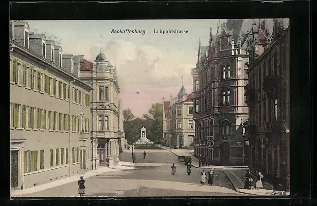 AK Aschaffenburg, Luitpoldstrasse mit Denkmal