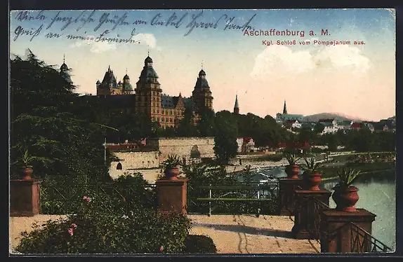 AK Aschaffenburg a. M., Königliches Schloss vom Pompejanum aus