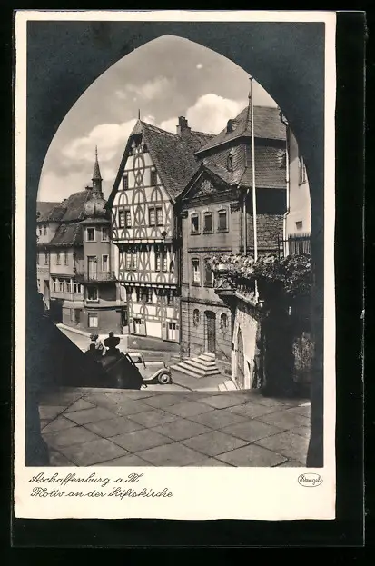 AK Aschaffenburg a. M., Motiv an der Stiftskirche