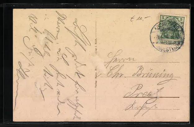 alte Ansichtskarte, gelaufen 1914, rückseitig Klebe- und Papierreste, rückseitig Oberflächenschaden, guter Zustand