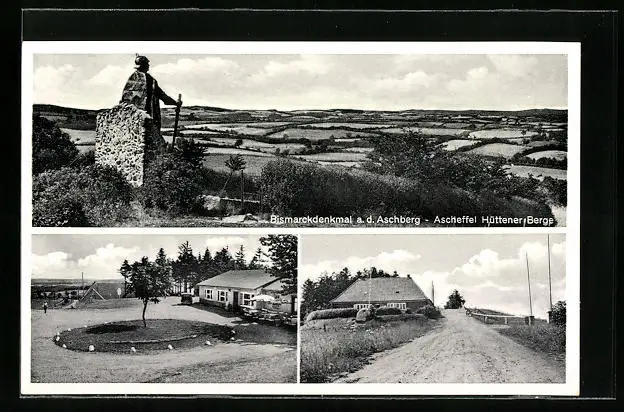 AK Ascheffel, Bismarckdenkmal a. d. Aschberg, Gasthaus Aschberg