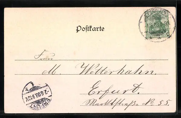 alte Ansichtskarte, gelaufen 1903, Stempelspur, guter Zustand