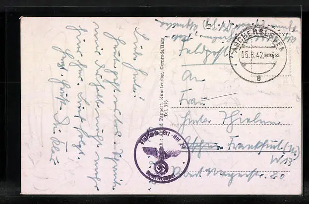 alte Ansichtskarte, gelaufen 1942 als Feldpost, Eckknick li. oben, guter Zustand